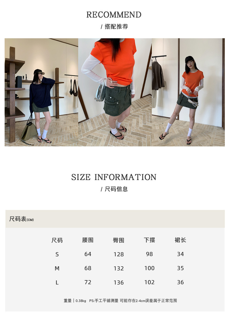 Summer Workwear Low Waist Skirt Women's Pocket Skirt